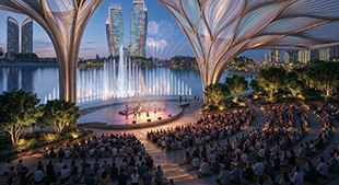 Conceived as a city within a park, The Spine seamlessly integrates green and blue landscapes within a pedestrian-first, largely car-free environment. Enhanced by lakes, water features, and promenades, alongside underground logistics, it creates a healthier, more immersive urban experience.